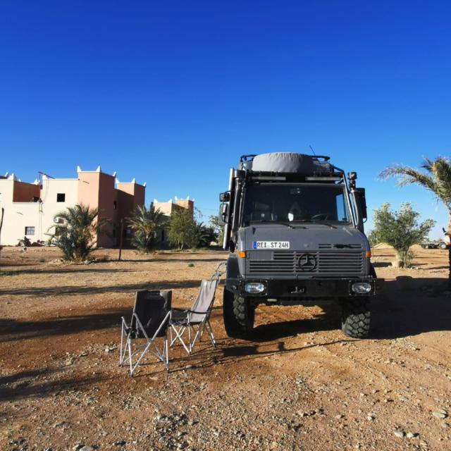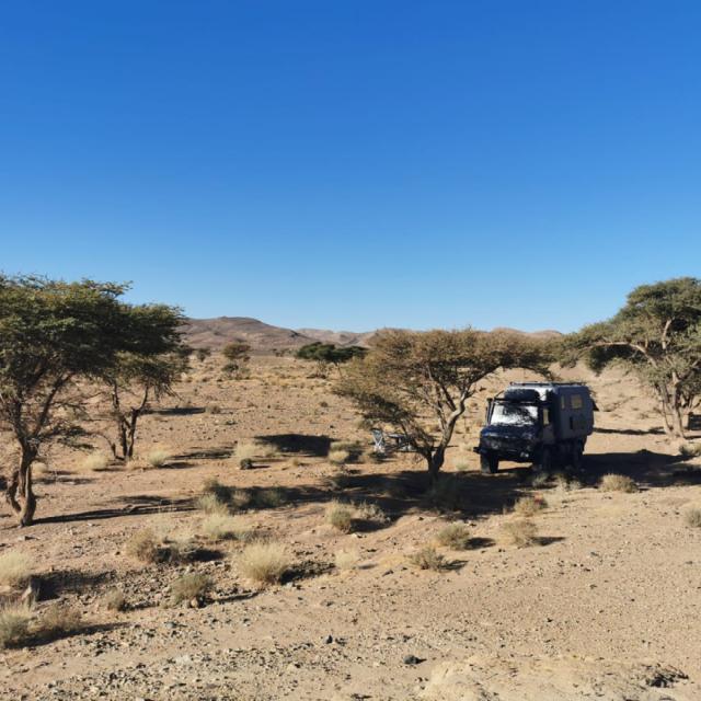 Vom Rücktransport gibt es keine neuen Informationen. Die Herstellerfirma denkt in alle Richtungen und wir bekommen Zeichnungen und Vorschläge für Verstärkungen der Zwischenrahmenkonstruktion. Wie schwierig es für uns hier ist, präzise Teile aus Stahl heranzuschaffen, kann man sich in Deutschland kaum vorstellen. Selbst wenn wir diese besorgen könnten, ist es damit nicht getan. Vom Unimog müsste die große Heckstaubox abgenommen werden (Gabelstapler ist hier keiner vor Ort) und dazu müssten mehrere Komponenten im Heckbereich (zB seitliche Stauboxen) teilweise demontiert werden. Das Lösen der Schrauben sehen wir nicht als zielführend, da wir vermuten, dass in diesem Bereich die Kabine noch am besten gehalten wird, während sie an den vorderen Montagepunkten bereits locker sitzt. Da die gesamte Konstruktion unter Spannung steht, ist es fraglich, ob wir das ganze danach wieder zusammenbauen könnten. Bis zu den Werkstätten sind es 30km, wir haben keine Möglichkeit einfach mal schnell in die Stadt zu fahren. Was sie dort sicher gut können, ist Schweißen. Dazu müsste aber wegen der Brandgefahr die GFK-Kabine vom Rahmen abgenommen werden, was wiederum der Hersteller untersagt. Ein Großteil jener Schrauben, die die Kabine auf dem Rahmen fixieren, ist nicht ohne Demontage der verklebten Möbel zugänglich. Davon abgesehen wäre eine Schweißer-Reparatur a la Afrika (und das würde sicher halten!) ein massiver Eingriff in das Gefüge von Zwischenrahmen und Kabine und würde das Schadensbild für eine etwaige Schadensbegutachtung verändern.